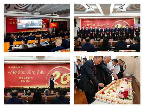 在場領(lǐng)導(dǎo)和參會人員觀看了公司成立20周年宣傳片。二十年的發(fā)展回首,有創(chuàng)業(yè)初期的艱苦磨礪,有艱難重組的新生喜悅,有穩(wěn)步發(fā)展的欣欣向榮。一路走來,華龍證券秉持凝聚智慧、創(chuàng)造財富的理念,履行國企職責(zé)、體現(xiàn)市場價值,業(yè)務(wù)持續(xù)健康發(fā)展,資本規(guī)模穩(wěn)步提升,已成長為經(jīng)營穩(wěn)健、資產(chǎn)優(yōu)良的現(xiàn)代金融機構(gòu)。