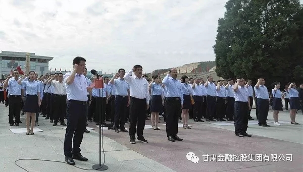 全體黨員在甘肅金控集團黨委副書記、總經理雷鐵的帶領下,敬獻花籃、鞠躬致敬,面對鮮紅的黨旗莊嚴宣誓,重溫入黨誓詞:我志愿加入中國共產黨,擁護黨的綱領,遵守黨的章程,履行黨員義務,執(zhí)行黨的決定,嚴守黨的紀律,保守黨的秘密,對黨忠誠,積極工作,為共產主義奮斗終身,隨時準備為黨和人民犧牲一切,永不叛黨。