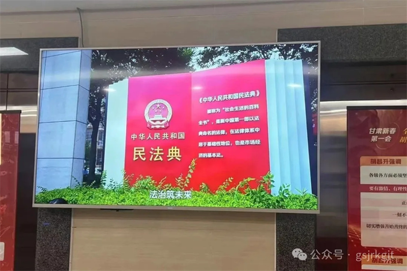 利用電子大屏幕循環(huán)播放《民法典》普法短視頻、法律條文解讀及案例動(dòng)畫(huà),以通俗易懂的方式讓民法知識(shí)“活”起來(lái)。