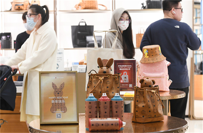 1月25日,游客在中免集團(tuán)??谌赵聫V場(chǎng)免稅店選購免稅商品。新華社記者 楊冠宇 攝