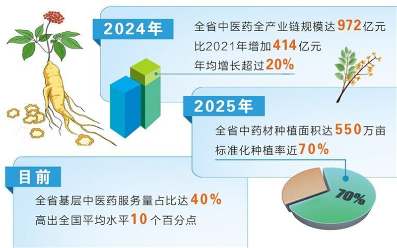 如今,全省已建立起覆蓋省、市、縣、鄉(xiāng)的中醫(yī)藥服務(wù)體系,實(shí)現(xiàn)所有綜合醫(yī)院中醫(yī)藥服務(wù)全覆蓋,基層醫(yī)療衛(wèi)生機(jī)構(gòu)中醫(yī)館全覆蓋,中醫(yī)適宜技術(shù)推廣使用全覆蓋,基層中醫(yī)藥服務(wù)量占比達(dá)40%,高出全國平均水平10個百分點(diǎn),真正做到讓人民群眾“方便看中醫(yī)、放心吃中藥”。