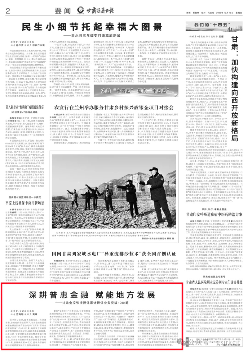 (新甘肅·甘肅經(jīng)濟(jì)日?qǐng)?bào)記者 蘇海琴 通訊員 高婧)堅(jiān)守初心使命,服務(wù)發(fā)展大局。在甘肅省委、省政府的堅(jiān)強(qiáng)領(lǐng)導(dǎo)下,甘肅金控集團(tuán)所屬金控張掖融資擔(dān)保有限公司(以下簡(jiǎn)稱(chēng)“甘肅金控張掖擔(dān)?!保┳猿闪⒁詠?lái),始終堅(jiān)守政府性融資擔(dān)保機(jī)構(gòu)功能定位,深耕普惠金融領(lǐng)域,以多元化、專(zhuān)業(yè)化的金融服務(wù)精準(zhǔn)緩解小微企業(yè)、“三農(nóng)”等主體融資難題。截至今年11月底,甘肅金控張掖擔(dān)保累計(jì)擔(dān)保業(yè)務(wù)突破1000筆,擔(dān)保規(guī)模超46億元,持續(xù)為張掖市域經(jīng)濟(jì)高質(zhì)量發(fā)展注入強(qiáng)勁金融動(dòng)能。