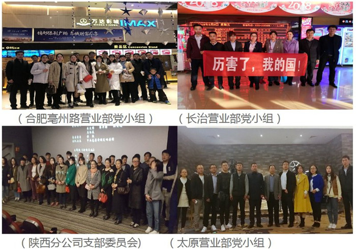 公司各地分支機(jī)構(gòu)積極響應(yīng),組織開展觀影活動。公司機(jī)關(guān)全體人員于3月9日、10日分批、分次在蘭州華聯(lián)影城觀看《厲害了,我的國》。一起見證祖國發(fā)展的輝煌成就,一同感受新時代的大國豪情。