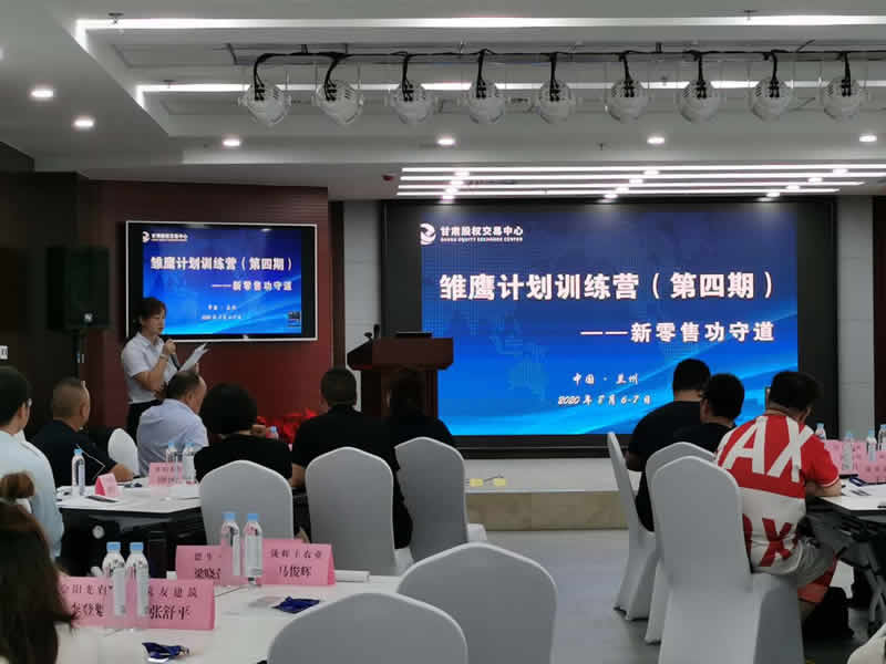 8月6日-7日,甘肅股權交易中心舉辦“雛鷹計劃訓練營(第四期)—新零售功守道,甘肅股權交易中心董事長樊亞娟致開班詞,省內(nèi)40家零售終端企業(yè)高管參加培訓。