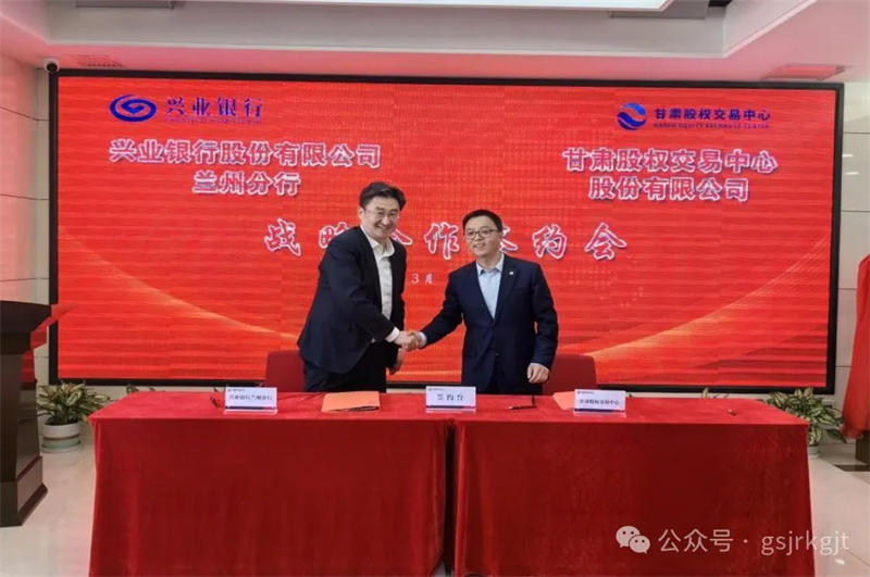 近日,甘肅股權交易中心與興業(yè)銀行蘭州分行舉行戰(zhàn)略合作簽約會。興業(yè)銀行蘭州分行黨委委員、副行長張華,甘肅股交中心總經理郭曉偉出席會議并致辭,興業(yè)銀行蘭州分行投資銀行部副總經理周濤、城關支行行長朱澤、甘肅股交中心掛牌企業(yè)甘肅中人通信工程有限公司董事長蹇宗銀出席會議。
