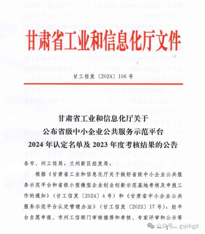 近日,甘肅省工信廳公布了《關(guān)于公布省級(jí)中小企業(yè)公共服務(wù)示范平臺(tái)2024年認(rèn)定名單及2023年度考核結(jié)果的公告》,甘肅股權(quán)交易中心在128家省級(jí)中小企業(yè)公共服務(wù)示范平臺(tái)考核中榮獲“優(yōu)秀”等次。