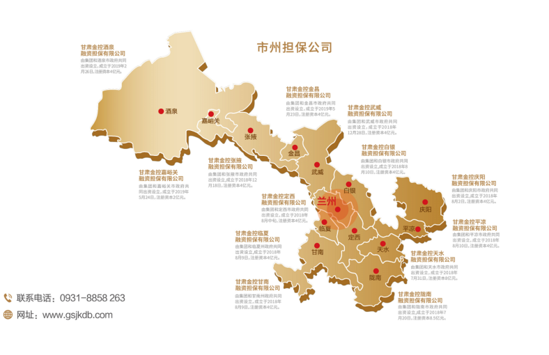 甘肅金控融資擔保集團股份有限公司(簡稱金控擔保)是由甘肅省財政廳出資,甘肅金融控股集團有限公司發(fā)起,經甘肅省地方金融管理局核準而設立的省級政府性融資擔保機構,甘肅省人民政府確定的省級融資再擔保機構,國家融資擔保基金簽約合作單位。連續(xù)四年資本市場主體信用AAA評級為穩(wěn)定,連續(xù)五年榮獲甘肅省“省長金融獎”,被評為甘肅省先進基層黨組織、省屬企業(yè)黨建融入生產經營典型創(chuàng)建示范點、“萬企興萬村”甘肅行動典型金融機構、首屆“甘肅社會責任企業(yè)”。