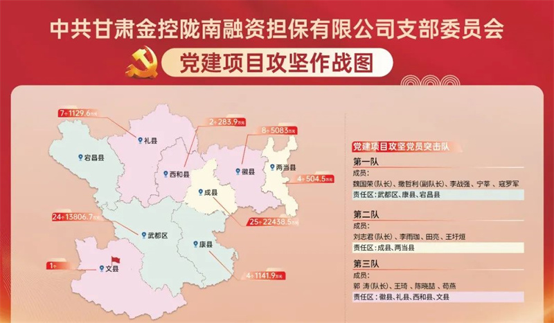 為扎實(shí)推進(jìn)“三抓三促”行動(dòng),全面落實(shí)集團(tuán)黨委黨建標(biāo)準(zhǔn)化、信息化、項(xiàng)目化、清單化建設(shè)要求,以高質(zhì)量黨建引領(lǐng)高質(zhì)量發(fā)展,金控隴南擔(dān)保創(chuàng)新“1+2+5”工作模式,全面打響黨建項(xiàng)目化攻堅(jiān)戰(zhàn)。